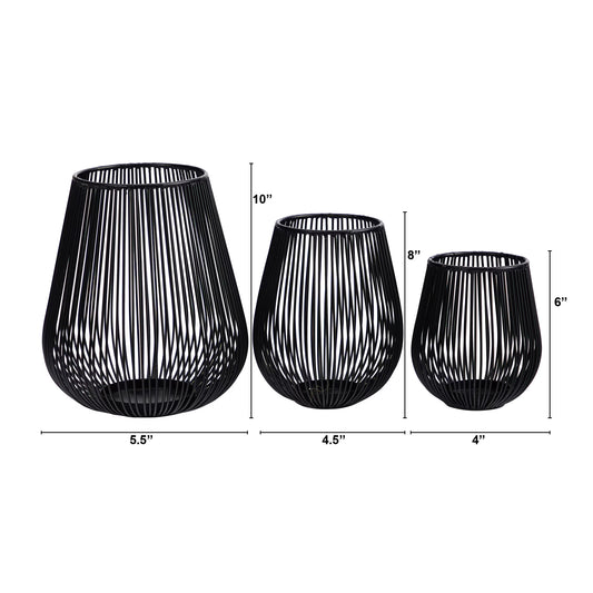 Vintage Black Metal Wire Lantern Candle Holders (Set of 3)