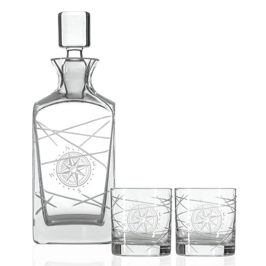 Compass Star Longitude Decanter and Glasses 3 Piece Set